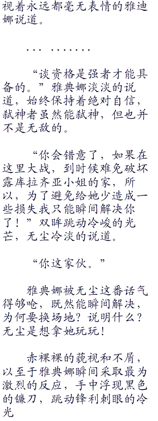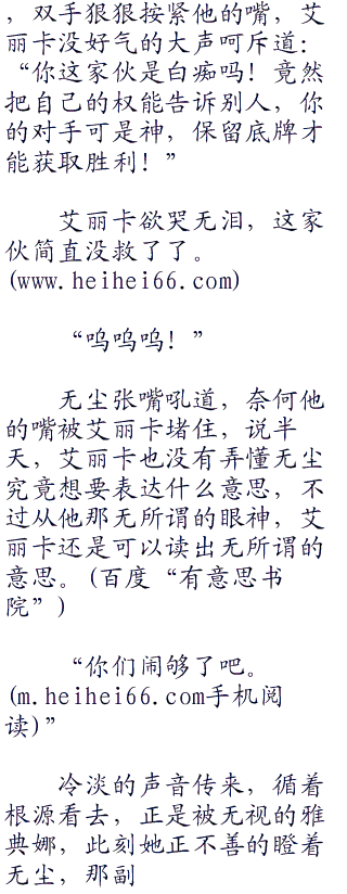 “你和我弑杀的神没区别,唯一的优势...比他们漂亮一些倒是事实。百度”