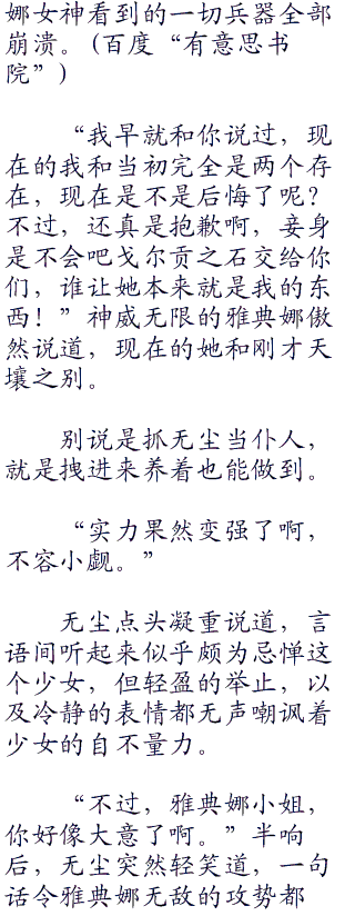 雅典娜理所当然的说道,眼珠子盯着无尘看来看去,时而露出满意的笑容,看起来极为满意无尘这个仆人。