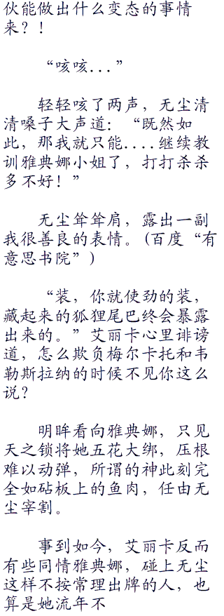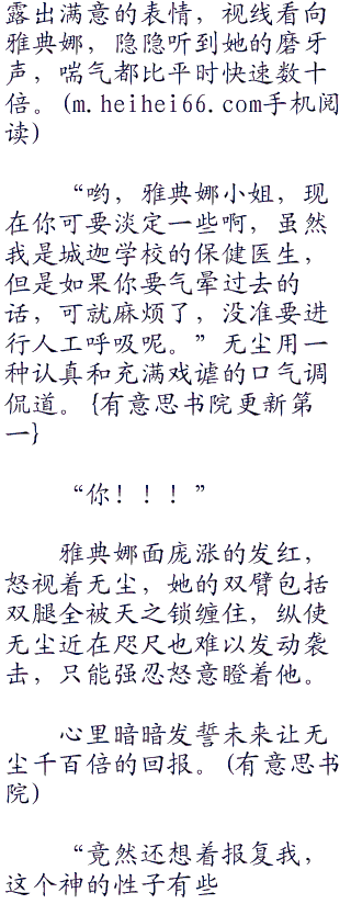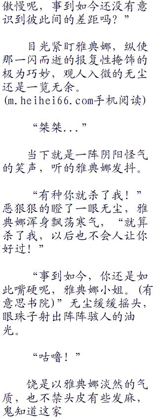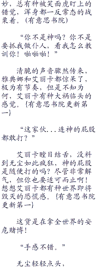 无尘暗暗觉得好笑无比,雅典娜似乎还没有搞清楚,她以为自己拿回昔日的力量,就可以和自己匹敌,那实在是大错特错。手机阅读更方便m..com