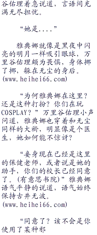 “助手?不用你费心了,赶紧回家吧,而且来保健室的人很少,我这个保健老师都是多余的,何况你这个助手。”