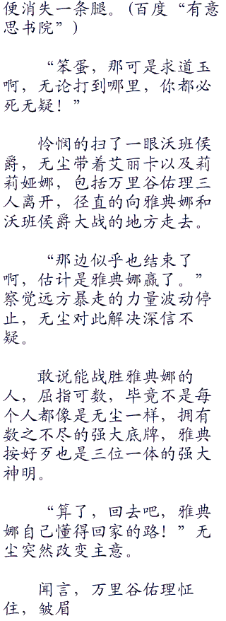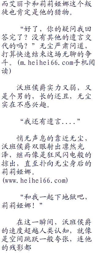 刚才能得手,主要是无尘吸引沃班侯爵大部分注意力,外加偷袭,所以能成功。若是她们俩单挑沃班侯爵唯有死路一条。