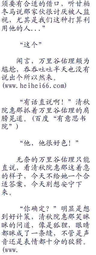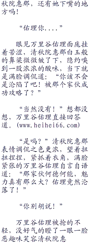 清秋院惠那更加郁闷,如果得到有用的消息被抓也算了,但是结果令人大失所望,她连一根
