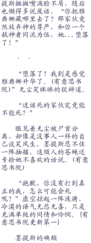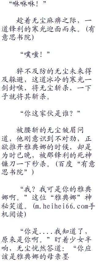 瞪大眼睛一看雅典娜,只见她噙着无尘的嘴巴不放,嘴角还带三分诡异的弧度,阴嗖嗖的像是毒蛇。