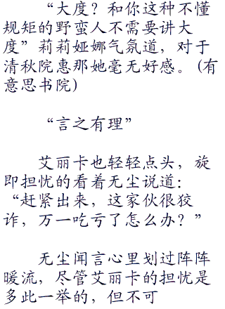 草雉护堂便是个例子,被清秋院惠那一系列悲催的测试,直到最后才勉强合格,然而轮到无尘这里反过来了,悲催的变成清秋院惠那。