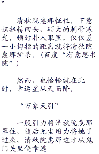 而清秋院惠那还能勉强稳住身体,说实话,无尘的确感到吃惊意外,毕竟从外表去看只是单纯的小姑娘罢了。