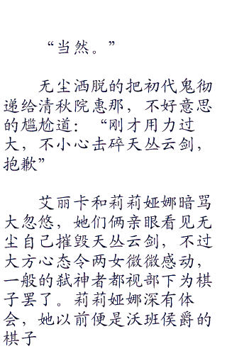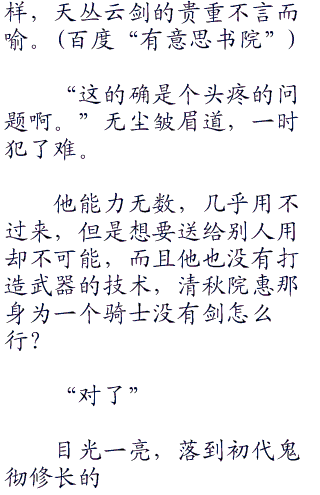 人活一口气佛活一炷香,反正摧毁天丛云剑也无伤大雅,权能无足轻重,比如说无尘的闪闪果实同样可以压缩成为天丛云剑。)