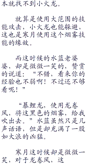 寒月就是让小火龙压制自己的实力,让每一步都踏的结实,那以后才会有着更大的成长,这就是基础的好处。
