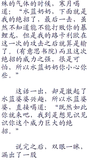 不过这时候的水蓝婆婆,那本来有些慈祥的笑容,变得有些凌厉,手掌中的权杖狠狠的击打了一下地面,直接喝道:“暴鲤龙,使用液体圈。”