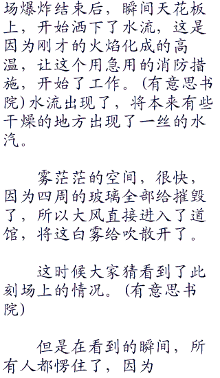 爆炸的威力很大,至少现在寒月用手挡在脸前,来阻挡因为爆炸而产生的飓风,然后就看到,整个华蓝道馆的玻璃也在这一瞬间,被这强大的爆炸,而给摧毁了。