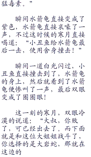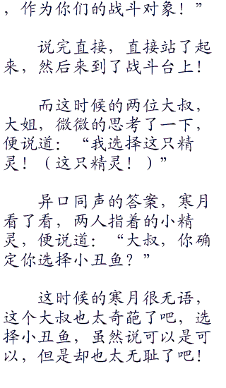 但是一个差不多有着岁左右的大叔,却是猥琐的一笑,说道:“水箭龟使用水炮。”
