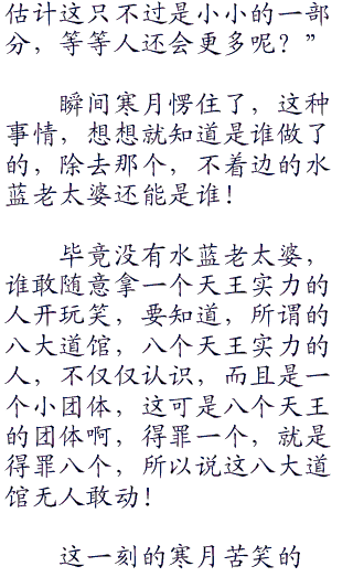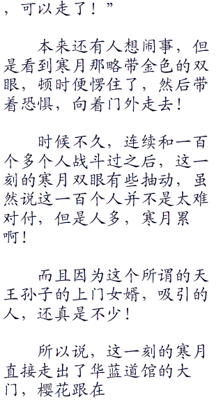 从乔伊和君沙的怀抱之中起来的寒月,直接穿衣,洗漱,然后来到了这个所谓的华蓝道馆,进行第二天的挑战!