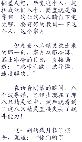 这一刻的寒月,双眼微微的一扫视,暗道:“真是不错,这实力已经,进入到了精英初期了,而且是训练家的精英初期,这可是一个大进步!毕竟人和小精灵不同!”