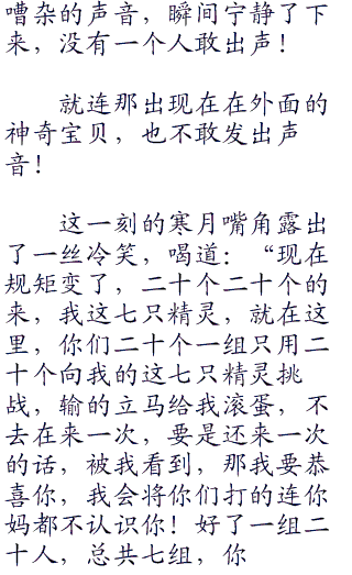 这时候的寒月很是奇怪,毕竟只要是个人都可以想象,一个实力强大的人,你根本就不是这个人的对手,你不放弃还能干什么!但是现在寒月奇怪的是,如今出现的人物不说比昨天更多了,而且昨天失败的人,竟然也来了!这纯属是找不自在吗?”