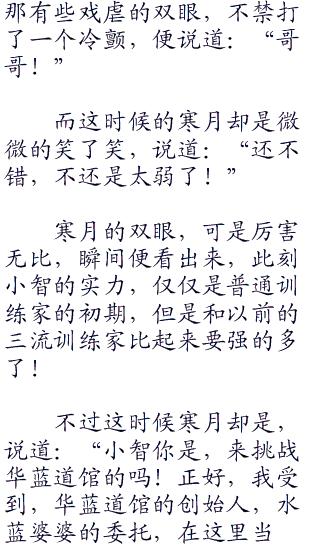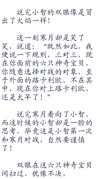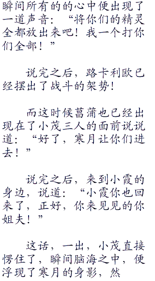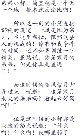 而小智的哥哥正是寒月,小茂眼中的寒月,就像是一个大山一样,是那样的高耸和强大,而身为他的