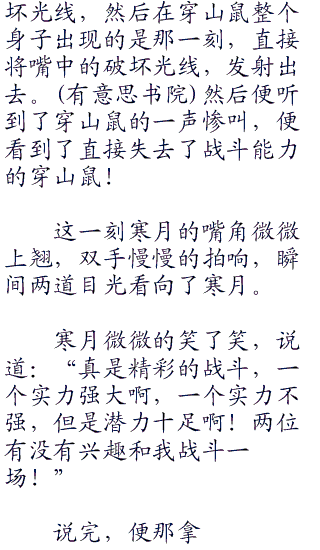 不过心中刚想完,寒月眼前的这位,直接喝道:“大狼犬,最后一击,破坏光线!”