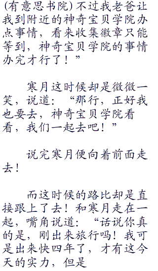 神奇宝贝之富二代的逆袭所有内容均来自互联网,书林文学只为原作者浅暮流殇的小说进行宣传。欢迎各位书友支持浅暮流殇并收藏神奇宝贝之富二代的逆袭最新章节。