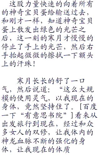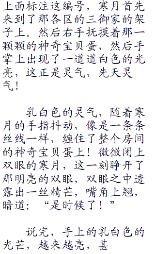 而且资质很差,当然也有可能有意外出现,但是这个意外的机会实在是太小!不过这时候的寒月却是翻到了最后一页,看到了那此刻记载着准神的神奇宝贝蛋的资料!