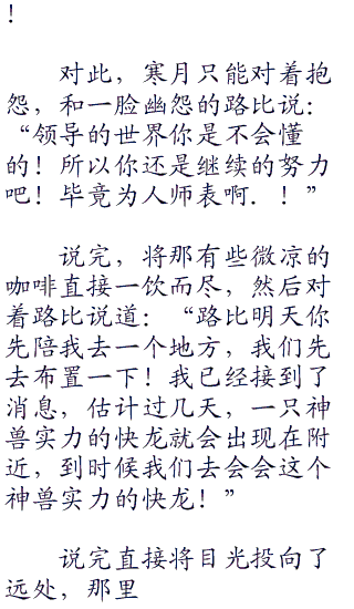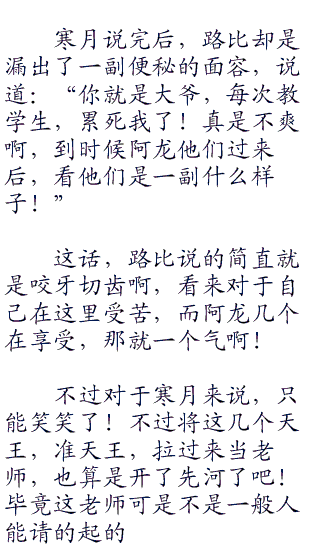 这一刻的寒月,微微的皱眉,说道:“那还不错,不过你这个当老师的也要负责一些,毕竟你可是他们的路比老师啊!而我是校长,要是教不好,我可不发工资啊!”