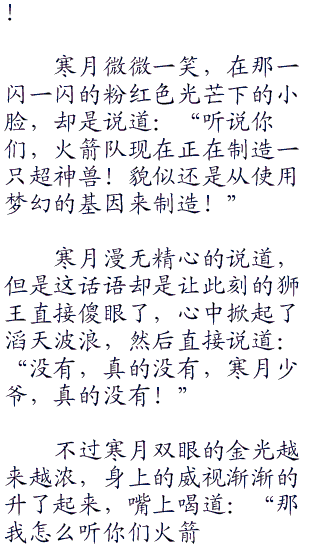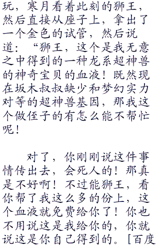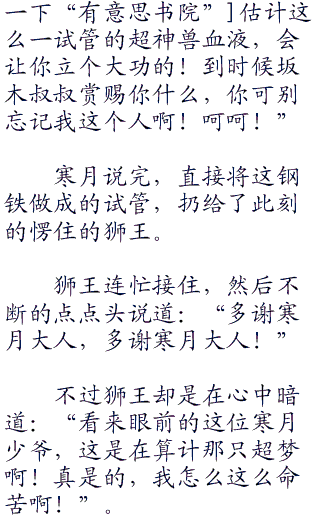 寒月说完,狮王这才慢慢的站了起来,不过那脚有些发软。