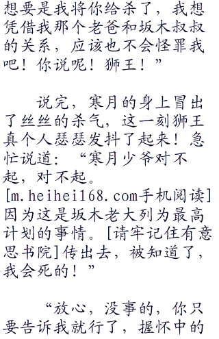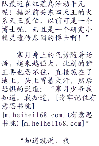 寒月对于狮王的恐惧还是有些小惊讶的,一个差不多三十岁的大叔,在一个十岁的小孩子面前瑟瑟发抖不奇怪才怪。寒月摇了摇头,说道:“好你起来吧!你跪在地上是什么事情啊!真是的我到现在才发现。好了你起来吧!”