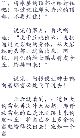 只要是能使用电系技能的小精灵,此刻全都将自己的能量转化成电力,然后按照身边的那些被冰冻起来的丝线,向着快龙的嘴中使用输送电力!