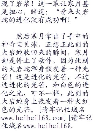 说完寒月直接大喝道:“大岩蛇靠你了,使用喷射火焰,然后在这巨大的爆炸之中,借助这爆炸的力量,淬炼的你的身体,进化成大钢蛇吧!”