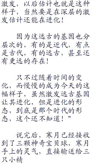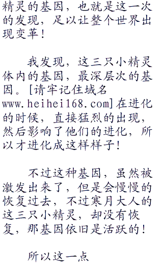 我检查过,寒月大人,三只小精灵的基因。发现,虽然现在他们的基因,有着龙系小精灵的基因。