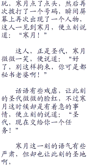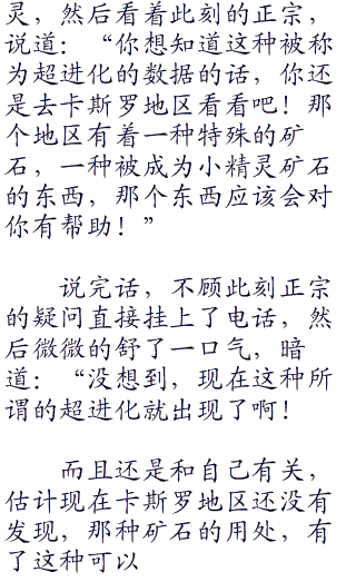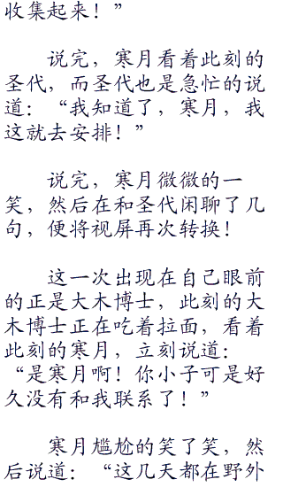 好吧,其实这个正宗,确实是靠着寒月的灵气而活着,因为那虚弱的身体,根本就不支持正宗的疯狂行动。所以寒月才用灵气维持着正宗的身体,才让正宗维持着,这种没日没夜的研究活动!