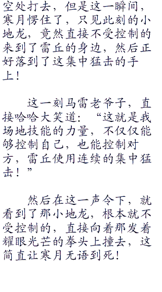 但是至今被冲到空中的雷丘,寒月却是微微一笑的说道:“我自然知道,不可能,但是我的招数可不仅仅只有这样子,你的雷丘在空中,我看你怎么躲避,小地龙使用威力最大的龙星群!”
