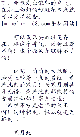 寒月在思考着!也不知道是不是因为,爱丽丝奶奶的示意,还是艾莉佳的不忍!艾莉佳却是说道:“那个,寒月!奶奶的这个所谓的香气你是破解不了的,更不是龙卷风能破解的!