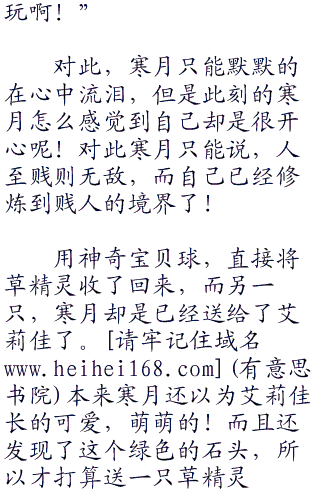 说完,在此看了看草精灵,然后瞪了寒月,一眼,这一眼包含了很多,然后慢慢的离去了。不过在走到寒月的身边的时候,却是说道:“艾莉佳就交给你了,我的孙女怎么可能比水蓝那个老太婆的孙女差!”