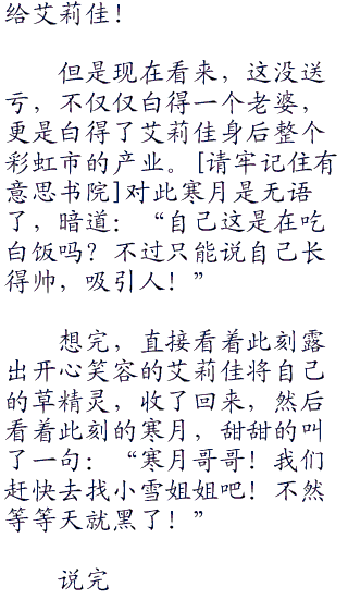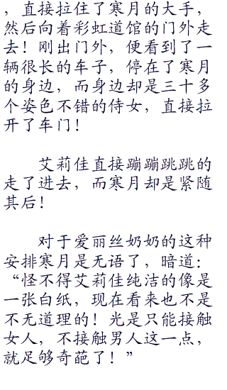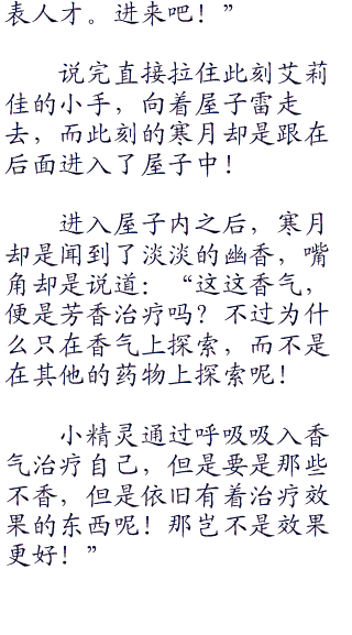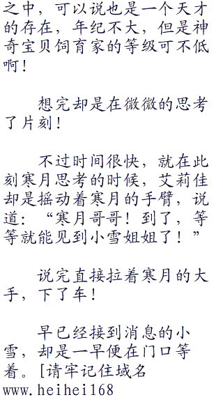 而这一刻的寒月才知道爱丽丝奶奶来到了,不过好在没有看到自己和艾莉佳牵手的那一幕,不然绝对会被骂死的!但是寒月不知道,自己和艾莉佳的一切全都在这个爱丽丝奶奶的眼中!