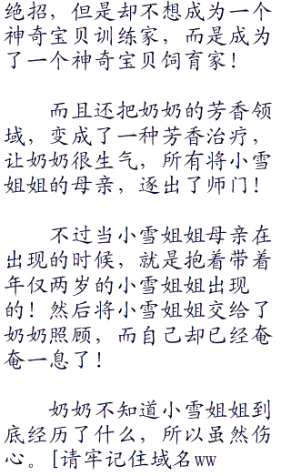 艾莉佳却是抱着醋可的草精灵,不肯放手,不过这时候的爱丽丝奶奶却是说道:“好了艾莉佳,你等等和寒月一起出去,去美容街那里,找小雪!毕竟刚刚进化的精灵,在通过按摩的话,会有好处的!”