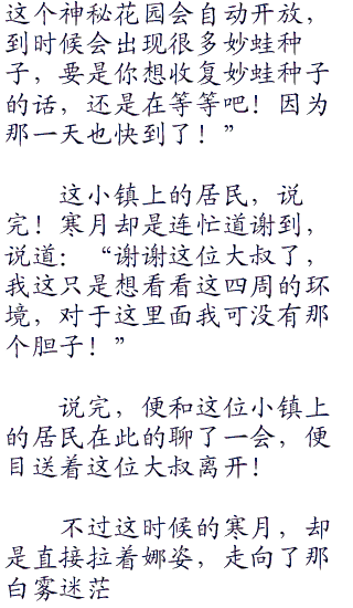 听到身旁之人的问话,寒月却是点了点头,说道:“是啊!现在根本就不需要走路过去,这一路上并没有值得我收复的精灵,而现在我们去的地方却是有一只神奇宝贝,这只神奇宝贝却是我想收复的对象!”