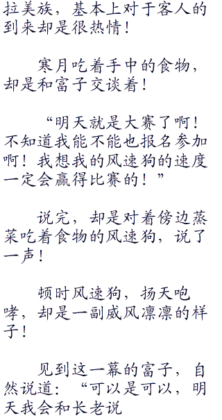女子在寒月的话语下,有些羞红的小脸,直接说道:“我叫富子,是拉拉美族的!我们拉拉美族世代居住在这个大草原上!对这里的一切都很熟悉!”