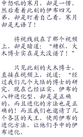 想完,然后双目看着那视频上的伊布的八种进化型的样子,寒月只能无奈的叹了叹气!