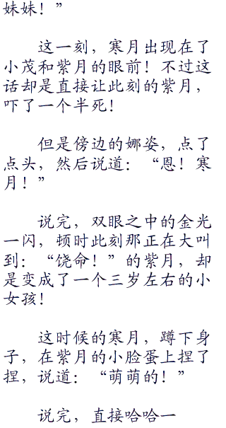 而紫月还是犯贱的说道:“哈哈!我没有妹妹!”
