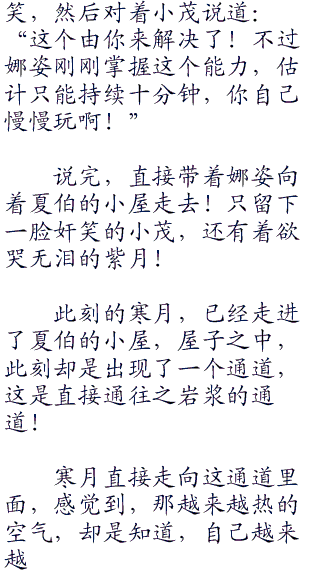 牵着那有些温暖的小手,寒月和娜姿向着昨日的小山走去!