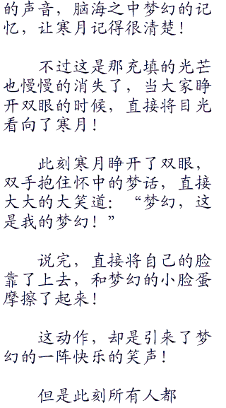 然后寒月的耳边传来一道,奶声奶气的声音,这是梦幻