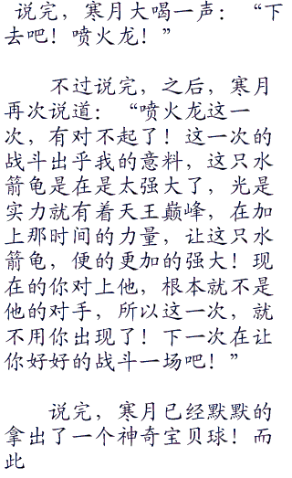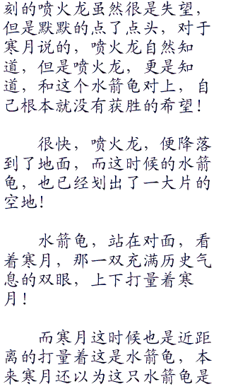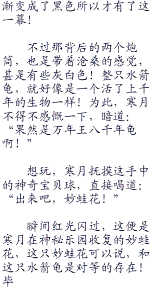 那只全身发绿,龟壳成黑色的水箭龟,抖动了一下身体,双眼之间看着此刻的寒月,然后又将视线看向了梦幻!