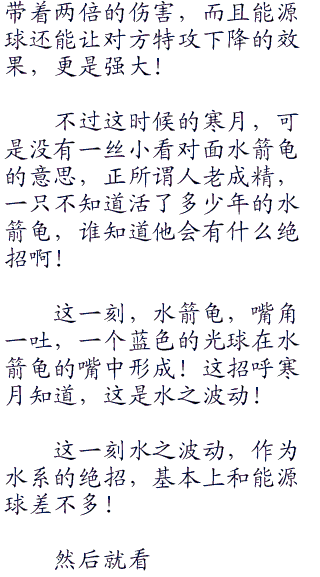 说完,双眼之间出现了一丝狠色!不过这说完的瞬间,水箭龟沉默了!