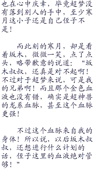 这一刻,寒月的有放在了超梦的肩膀上,却是带着欣慰!