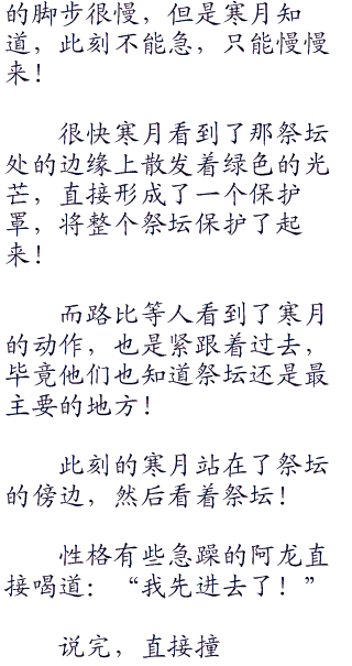 中心地带,寒月看到了一个祭坛,是和寒月在在常磐森林见到的祭坛一样!