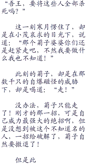 但是时候不久,当烟尘消失的时候,寒月却是看到了菊子微微阴笑的面容!