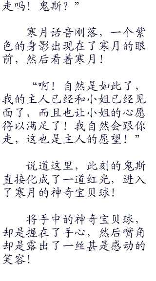 寒月看着这一幕,也看着雨之流和那位在紫菀市等待千年的女子,在两人拥抱之中,渐渐的消散!