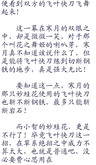 虽然不知道名字,但是却是有着一个花之姬的称号,而最强的神奇宝贝,竟然是喇叭芽!而且这个喇叭芽的飞叶快刀却是锋利无比!