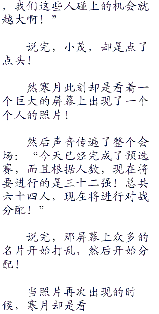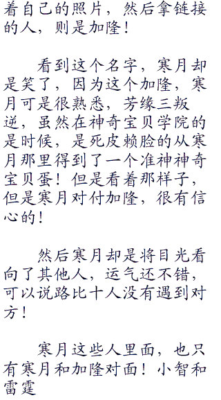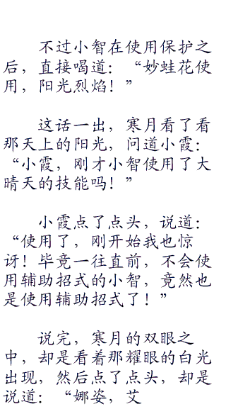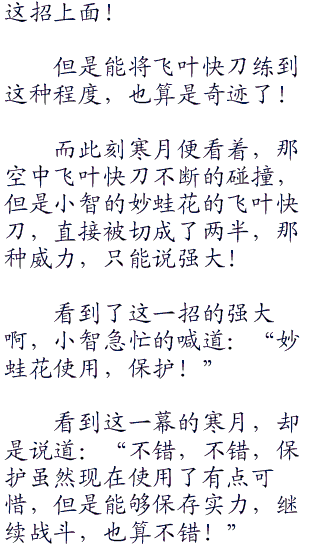 看到这一幕,寒月却是问道傍边的小霞,说道:“怎么样,小智的战斗情况怎么样?”