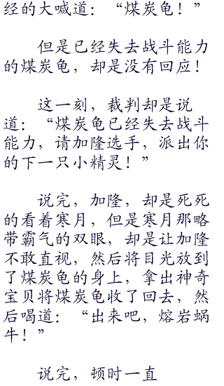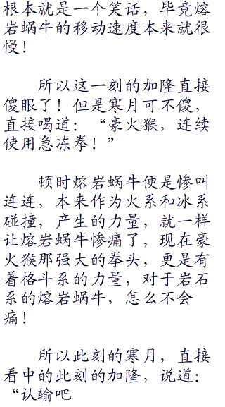 对此,寒月自然知道,所以在看到煤炭龟使用铁壁的瞬间,直接使用了岩石利刃攻击煤炭龟的脚部!对于煤炭龟使用铁壁的方法就是缩龟壳,但是煤炭龟的龟壳是在是太小了!但是这一刻,岩石利刃,直接命中了煤炭龟的身侧,作为煤炭龟的身侧,正是安裸漏出来的身体!