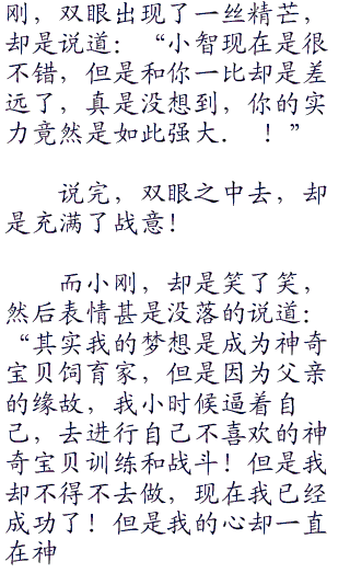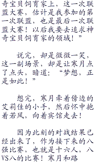 阿宏此刻却是一脸的伤心,但是也有着一脸的心痛,这是对于小精灵的心痛!手中抚摸着手中巴大蝴的神奇宝贝球,然后快速的向着身后的通道走去!看来是医治神奇宝贝去了!