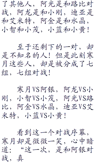 想完直接向着另一个场地走去,因为此刻寒月可以说是最快解决对手的,虽然不知道路比等人遇到的对手,是不是和阿宏一样,但是估计都是很弱!